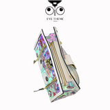 L-size handbag with eye pattern in two colors: transparent and reflective mirror, comes with a small bag inside.
